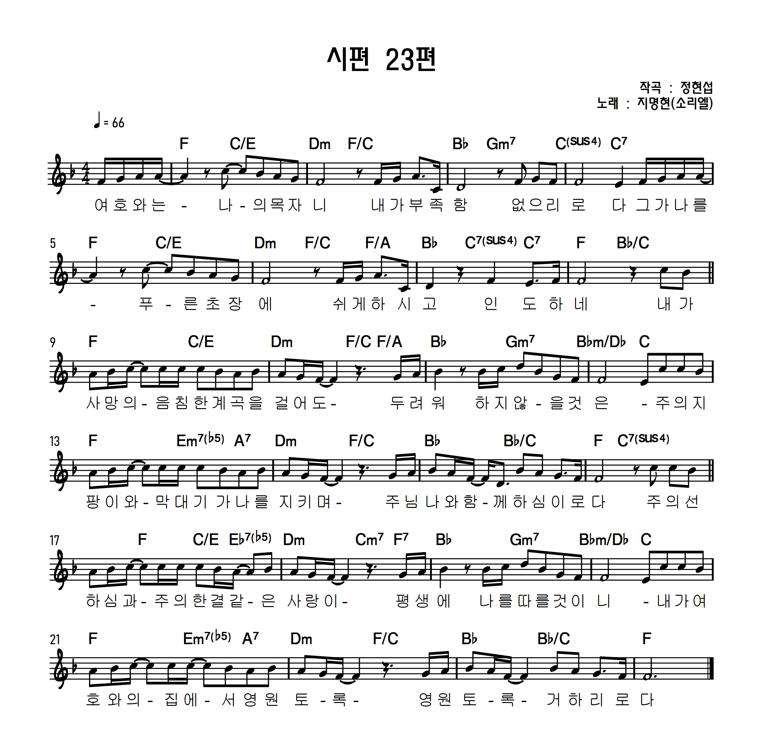악보 다운로드 (PDF) : 지명현 - 시편 23편