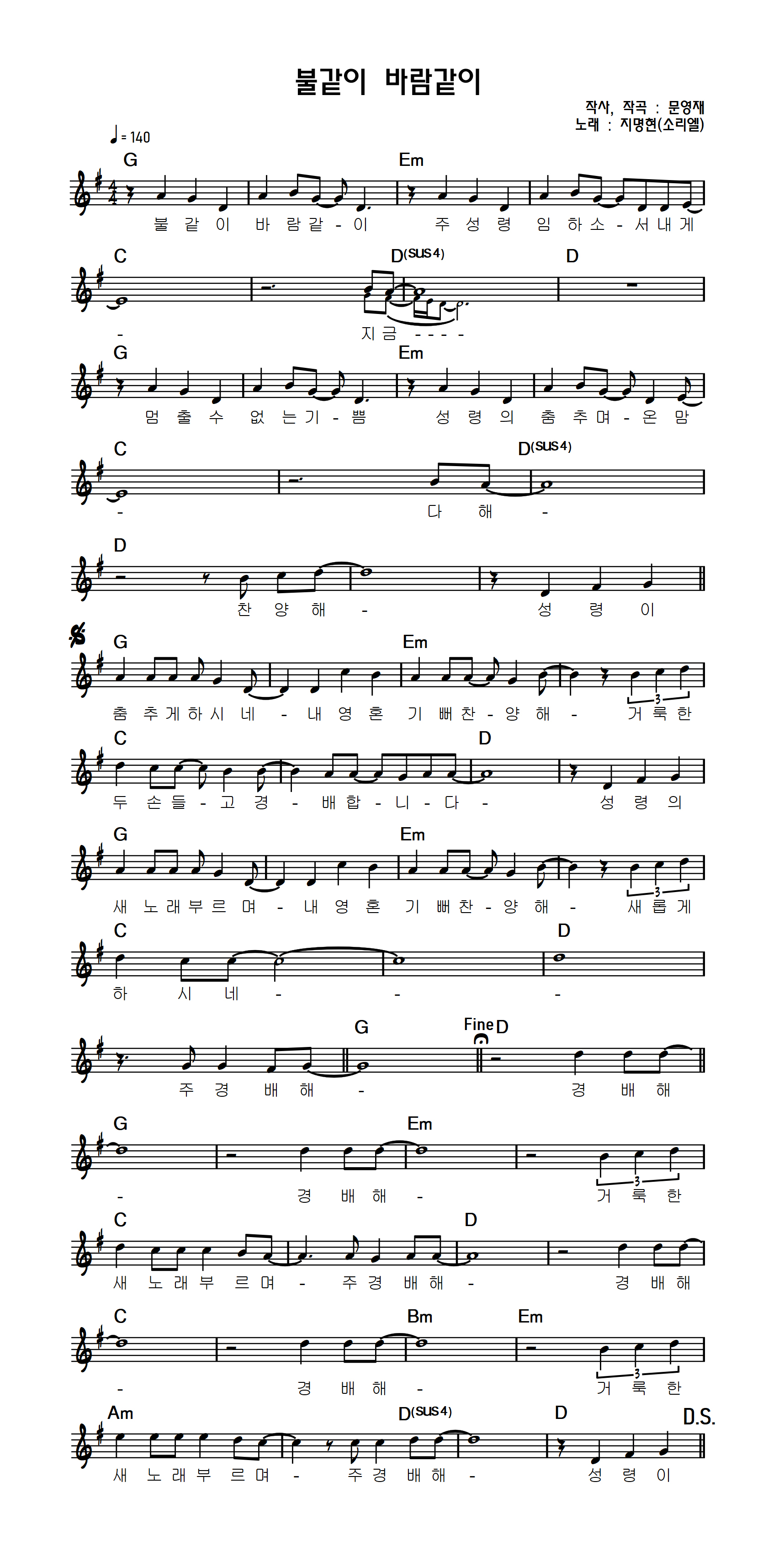 악보 다운로드 (PDF) : 지명현 - 불같이 바람같이